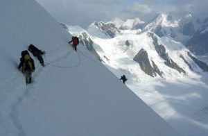 Руководили восхождением традиционно Николай Захаров и Валерий Балезин. В спортивном составе шестеро. Капитан команды — Александр Михалицын. Его высотный опыт включает такие серьезные достижения, как первопрохождение стенного маршрута на пик Победы в 2003 году и восхождение на большой семитысячник Конгур в Китае в 2004-м. Он хорошо переносит гипоксию, способен трезво оценивать ситуацию. Владимир Архипов — тут без комментариев — самый опытный член команды, находящийся в прекрасной физической форме. Андрей Литвинов, Сергей Черезов — это неизменные участники и соавторы практически всех красноярских достижений последних лет. Андрей работает впереди, а Сергей, напротив, организует «хозяйство» на восхождении, поднимает грузы. Лучше него никто не выберет безопасное место для лагеря, не установит платформу и т. д. Владимир Гунько и Александр Янушевич в основном составе пока новички. Но главное начать. Ведь в сборную команду края попасть почти не реально, очень высокая конкуренция. А они попали.