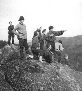 В мае окончил гимназию. Работаю как любитель в музее и хожу на Столбы. Снова ожила Ща и наша то шумная, то певучая компания разбудила столбовское эхо. Арсен Иванович Роганов уже полноправный член нашей компании, приходит и уходит с нами. Проездом из Питера в Абаканск на Столбах была Фиса Самоделова и с ней Шура Волкова. В середине лета побывал у родителей в Ачинске. По приезде в Красноярск пришел на Столбы, а под Щей никого, почти все в лодках пошли на Бирюсу, видимо, это была затея Букатого.