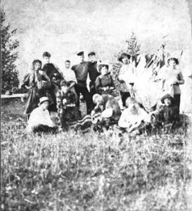 Один из снимков Роганова от 18 мая 1909 года еще с кое-где лежащим снегом имеет уже значительный состав компании. Видимо, это не первый ее выход. Вообще ходили регулярно.