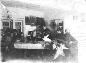 Этот год мы еще были все вместе и кроме Столбов бывали в других не менее прекрасных местах наших окрестностей. Встречались и в городе, особенно на квартире у Тулуниных. Квартировавшая у них учительница Мария Федоровна Крылова имела пианино, а у хозяев был граммофон с длинным рупором, на котором проигрывались хорошие пластинки с записями Шаляпина, Собинова, Паниной, Вяльцевой и других, а из местных: Словцова и Пикок. Здесь мы тоже много пели хором и слушали сольные выступления Климова и Степановой. У тулуниных 19 ноября мы справляли именины Венки, о чем говорит фотографический снимок. Зимою справили в Мансарде именины Кешки Маслая и к нам чуть-чуть не пришли наши девицы. Пришлось исключительно усердно сделать невиданную до толе приборку в нашем холостяцком стане.
